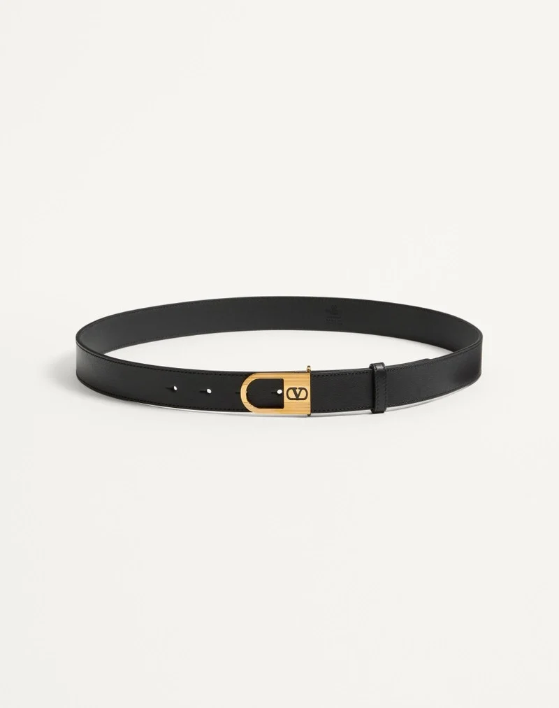 VLogo Signature Belt In Shiny Calfskin 30 Mm With Enamelled Logo Detail