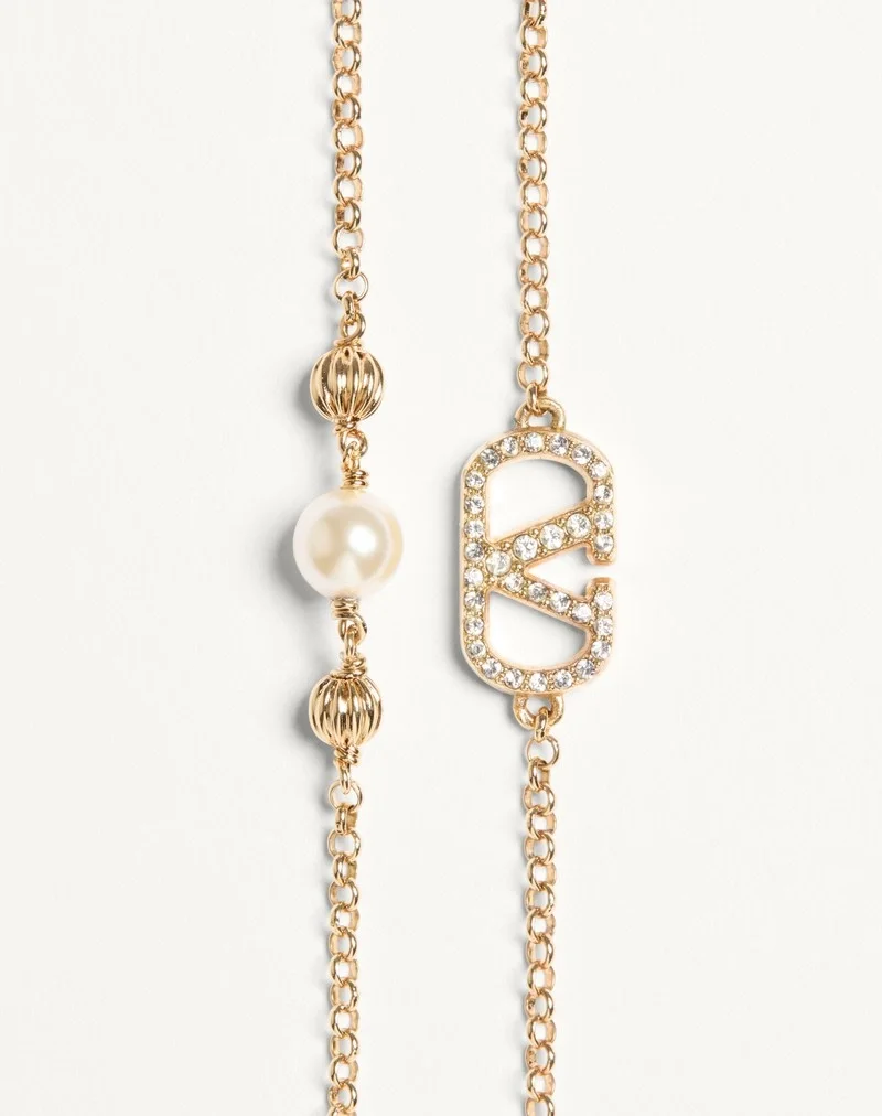 - Chain with metal spheres and butter-colored Swarovski® pearls