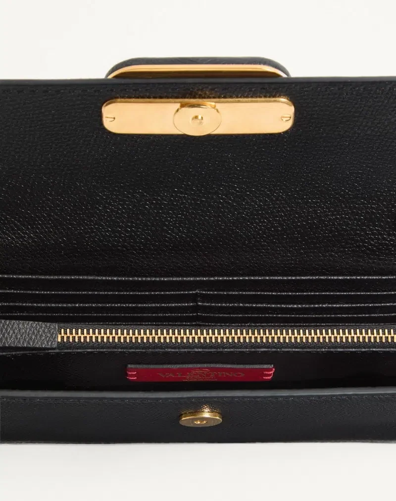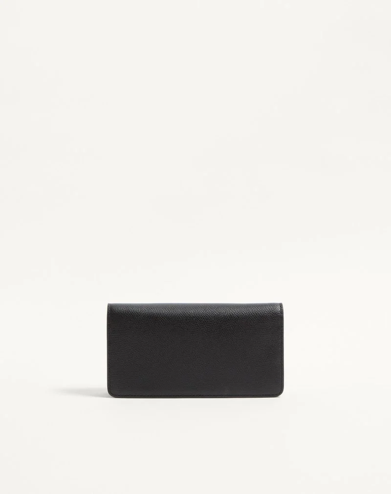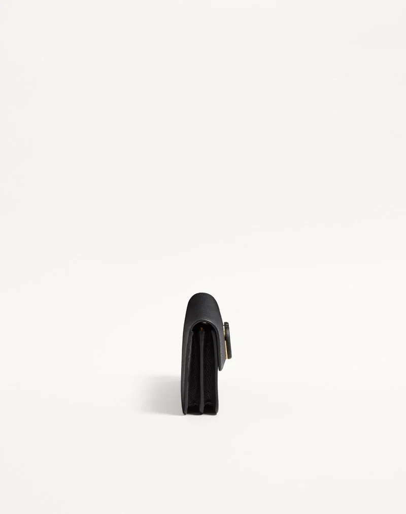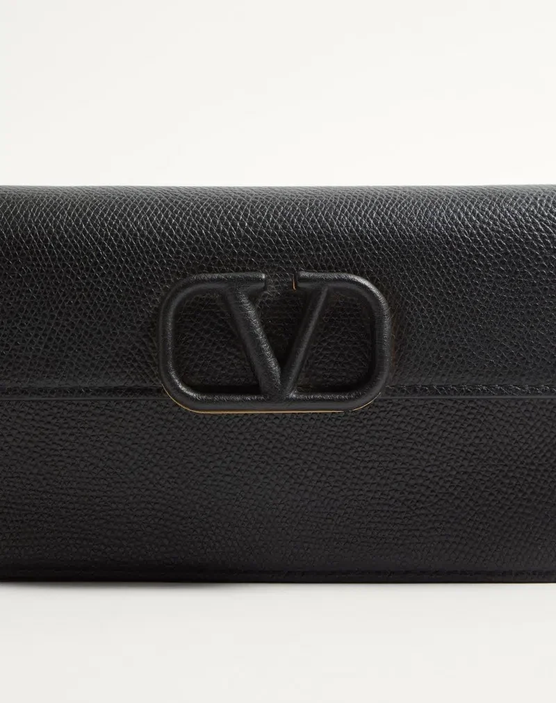 Valentino Garavani VLogo Signature grainy calfskin wallet with chain.