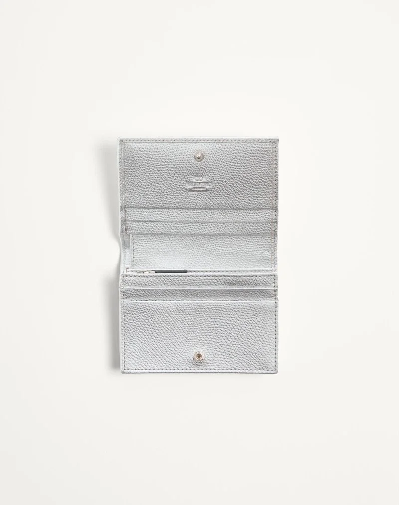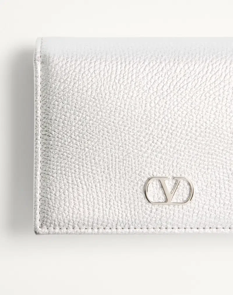 Valentino Garavani VLogo Signature wallet in laminated grainy calfskin.