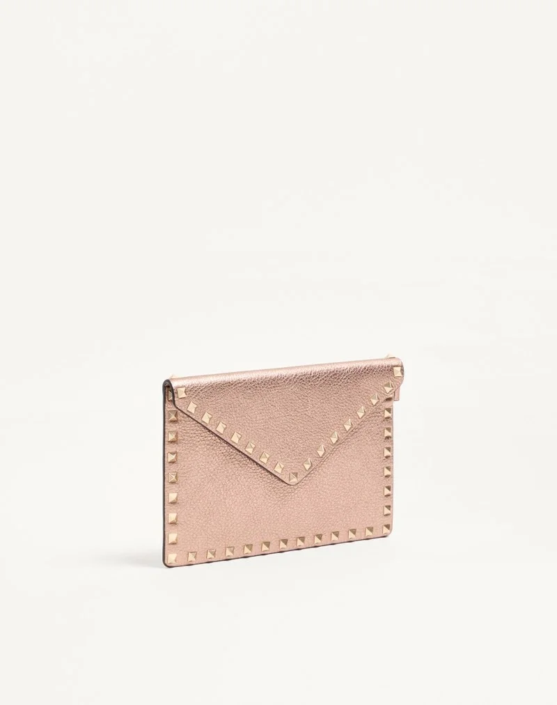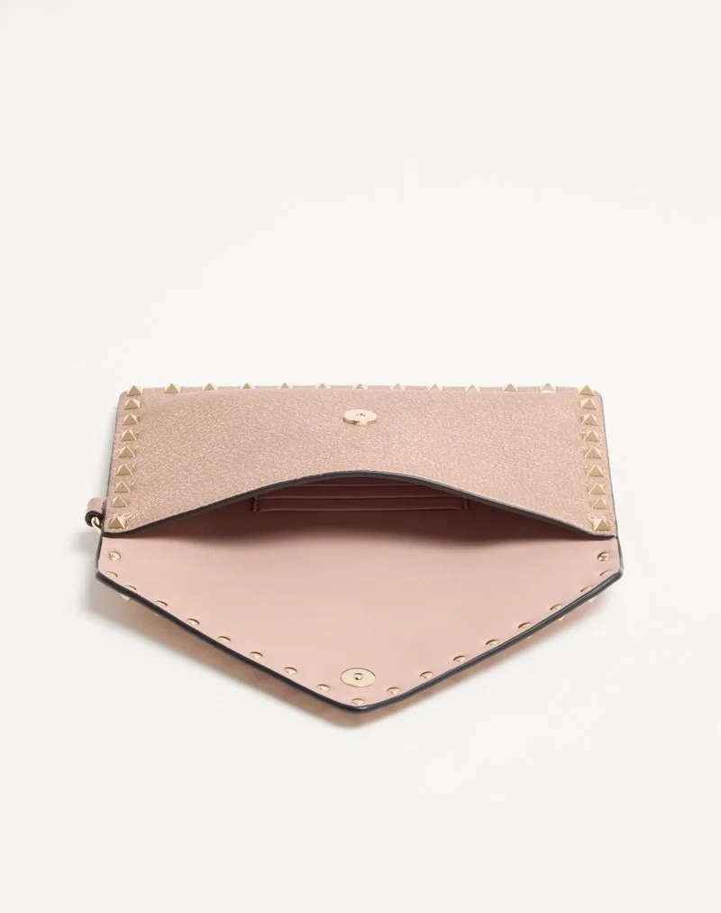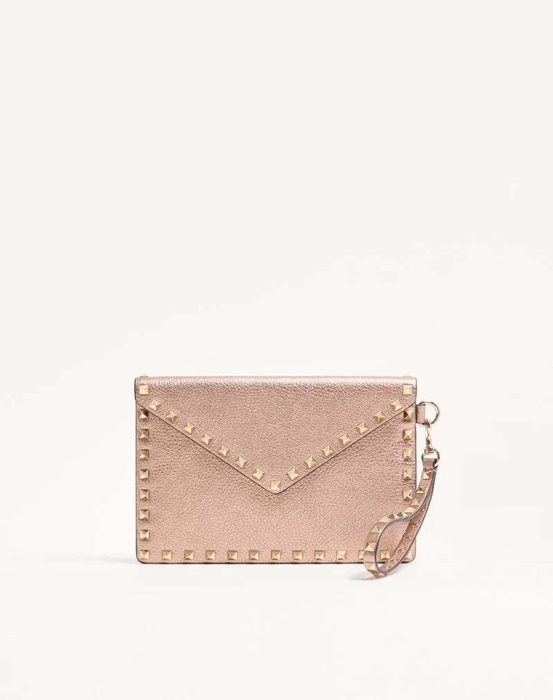 Visit the Valentino Online Boutique and discover Rockstud Laminated Grainy Calfskin Clutch Bag for Woman. Complimentary shipping and returns.