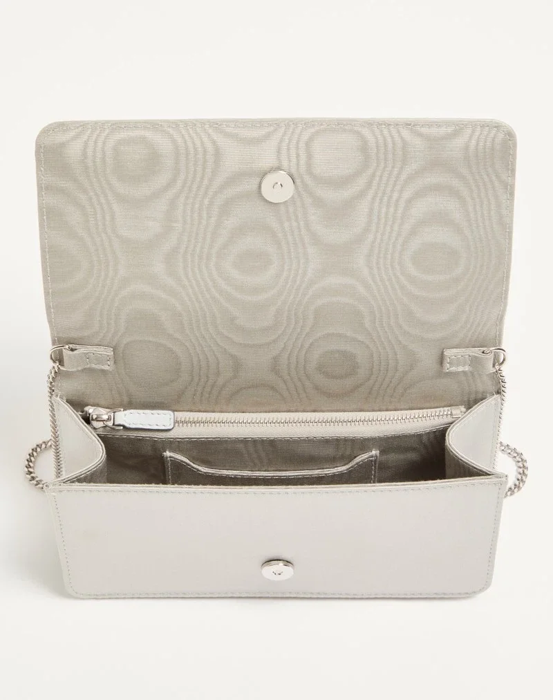 - Moiré lining. Interior: one zipper pocket and a card slot – Fixed chain. Height: 54.5 cm / 21.5 in.