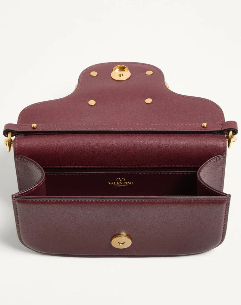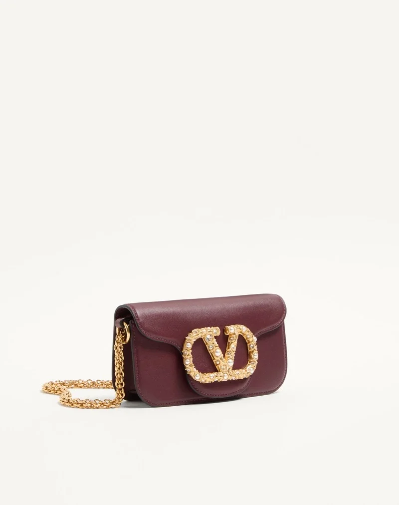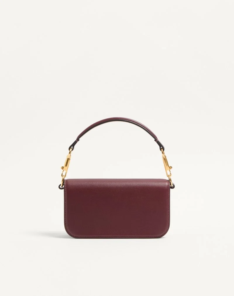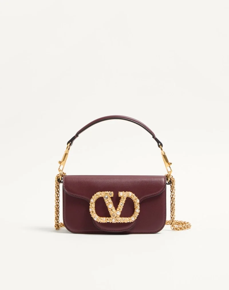Valentino Garavani Locò small calfskin shoulder bag with VLogo Signature jewel element. Equipped with both a detachable sliding chain and a detachable handle, this accessory can be worn as a crossbody/shoulder bag or carried as a handbag.
