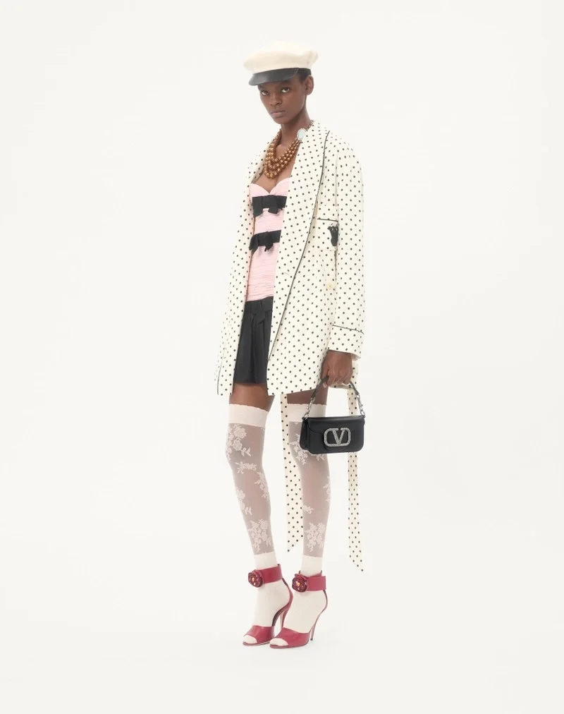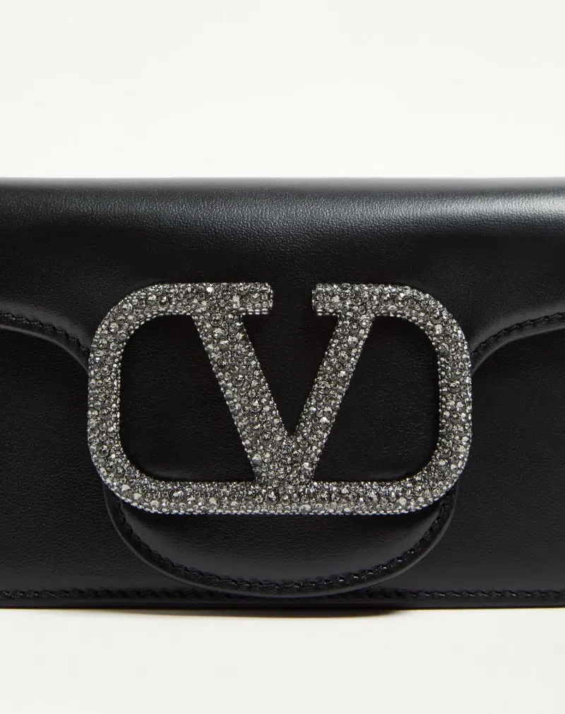 Valentino Garavani Locò small shoulder bag in calfskin with VLogo Signature element covered with Swarovski® crystals.