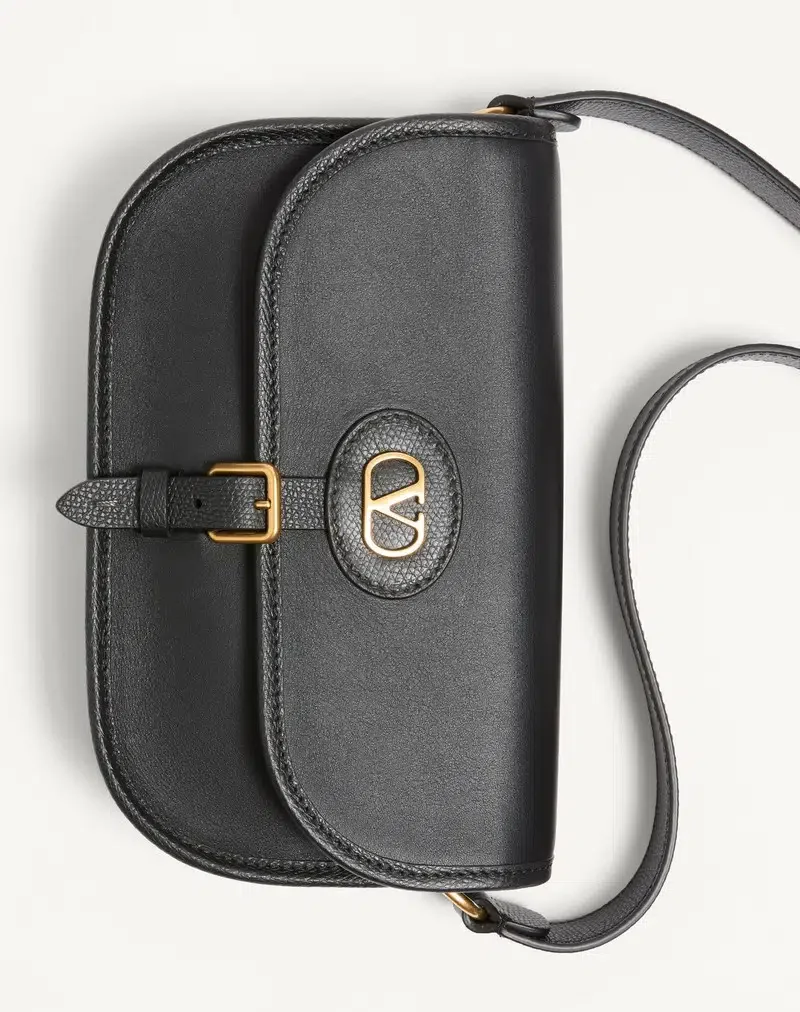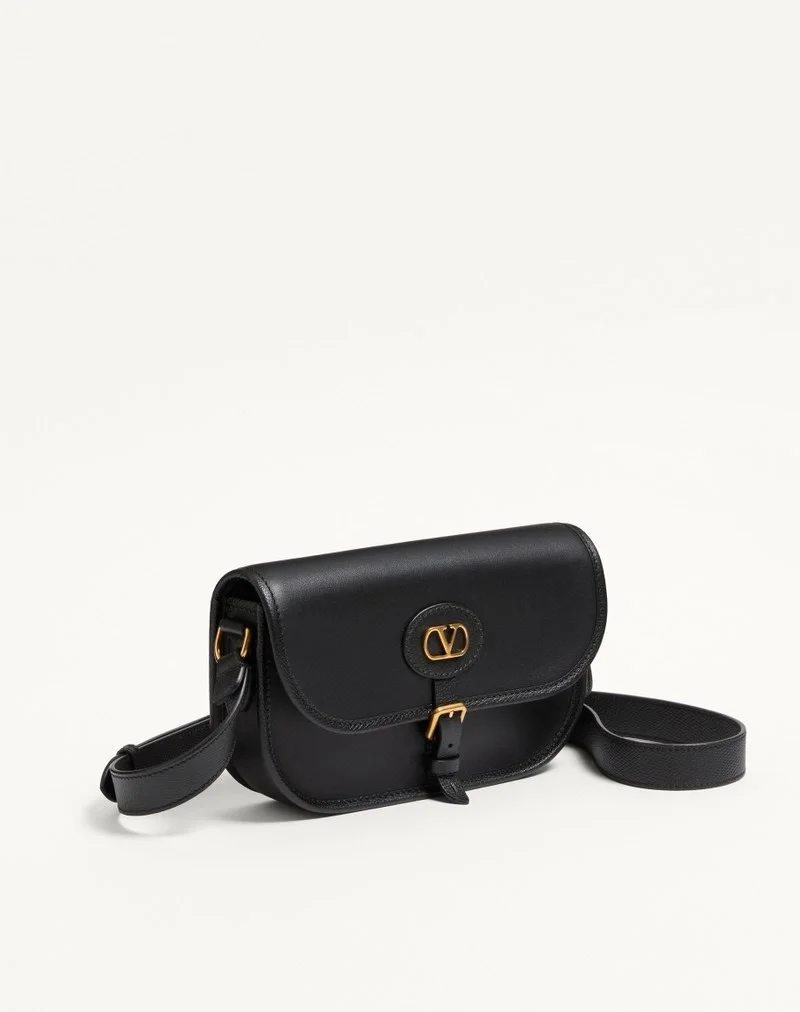 Valentino Garavani Antibes small calfskin crossbody bag detailed with leather patches and VLogo Signature metal feature. The bag can be carried on the shoulder/crossbody thanks to the adjustable leather shoulder strap.
