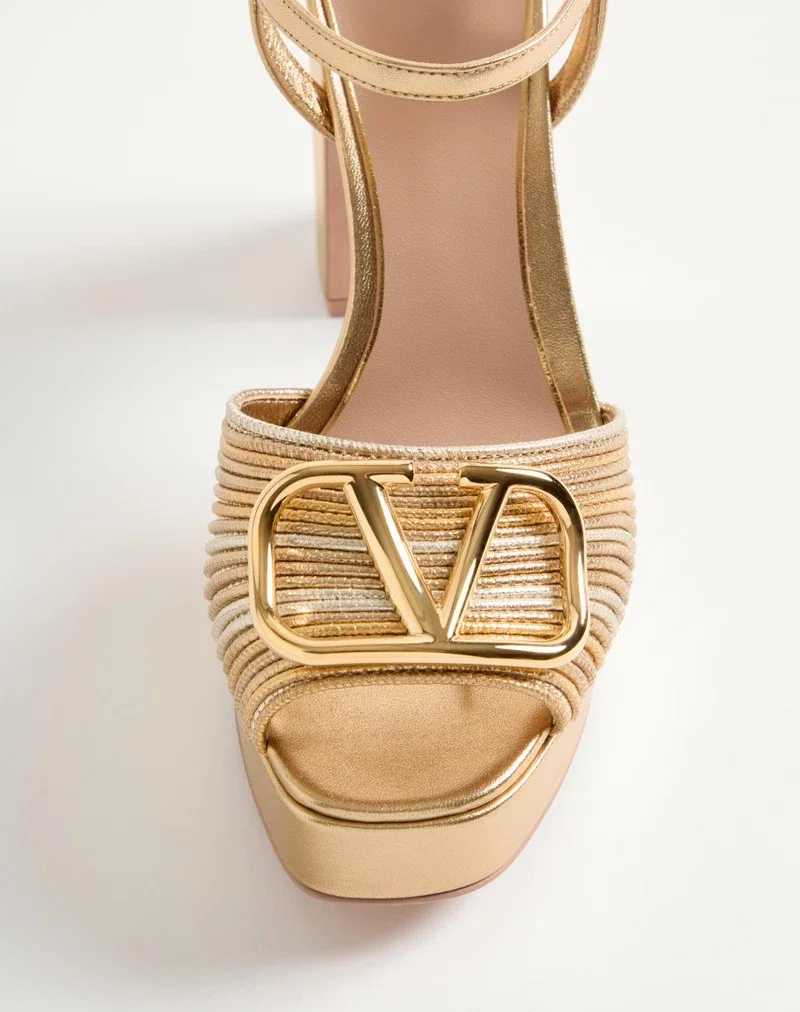 VLogo Signature Metallic Platform Sandal with Cornely Embroidery 115mm