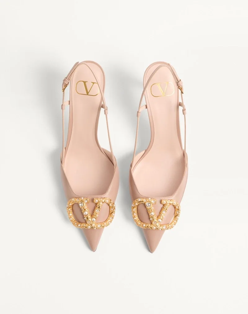 Valentino Garavani slingback calfskin pump in calfskin with leather details and VLogo Signature decoration