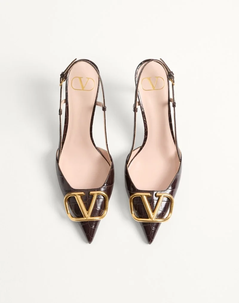 Valentino Garavani VLogo Signature Slingback Pump in crocodile-effect printed calfskin