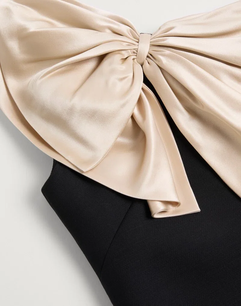 One-shoulder dress in Crepe Couture with Crepe Satin sash and bow
