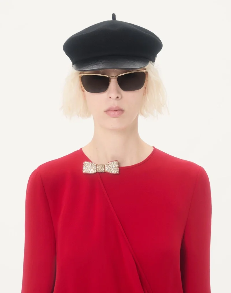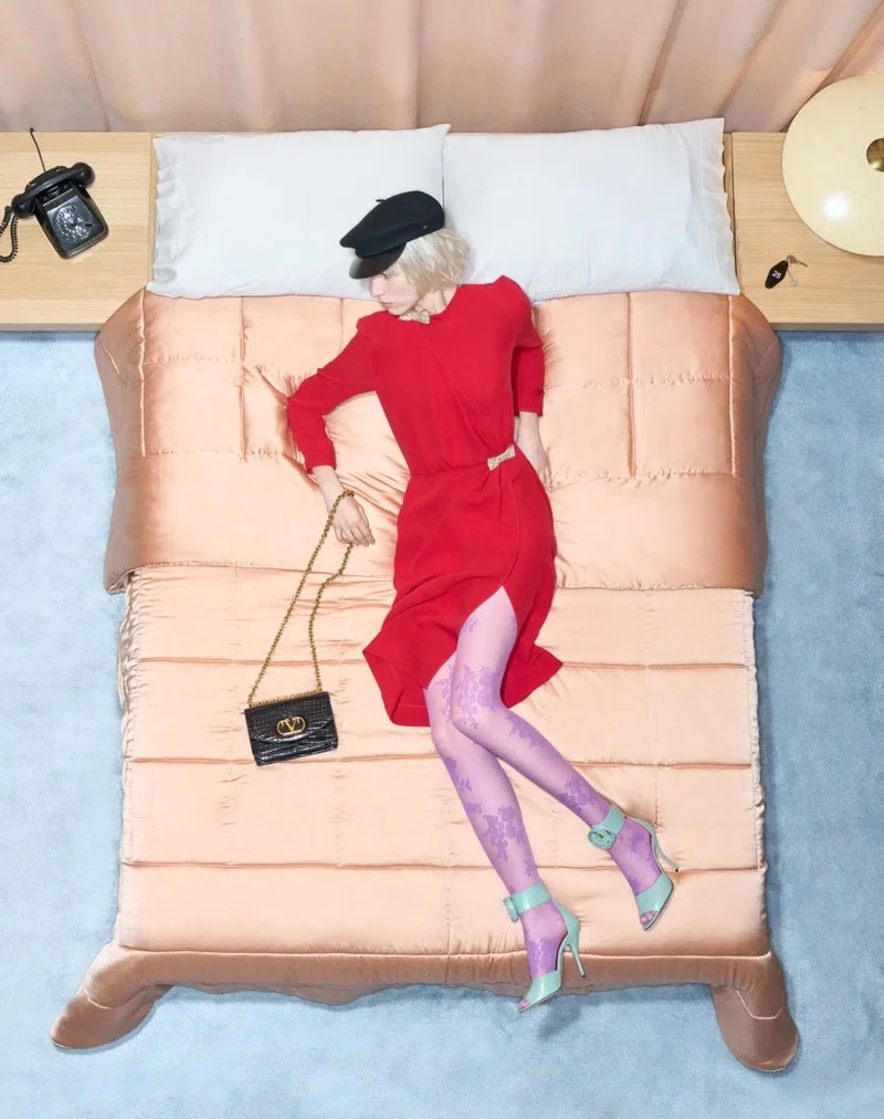 The look of the model is completed by a Valentino Garavani Vain Bag and Valentino Garavani Drip Rose Shoes.