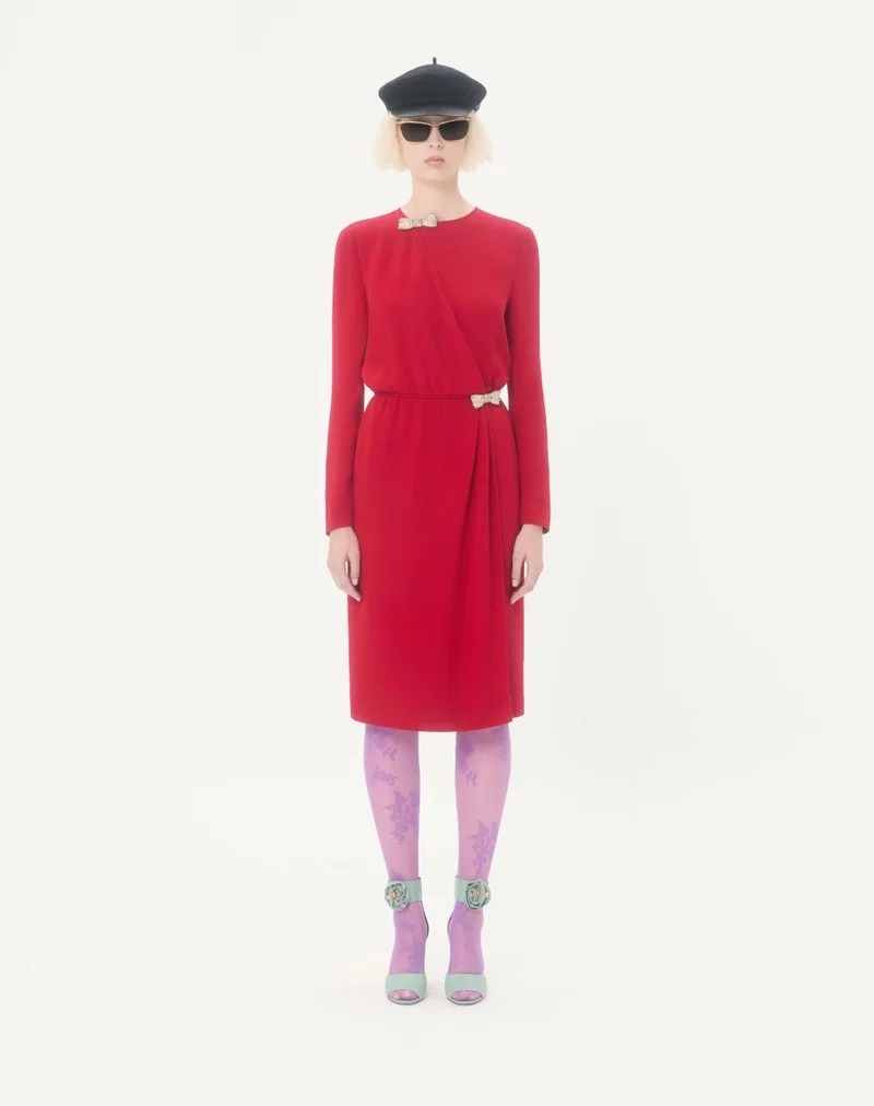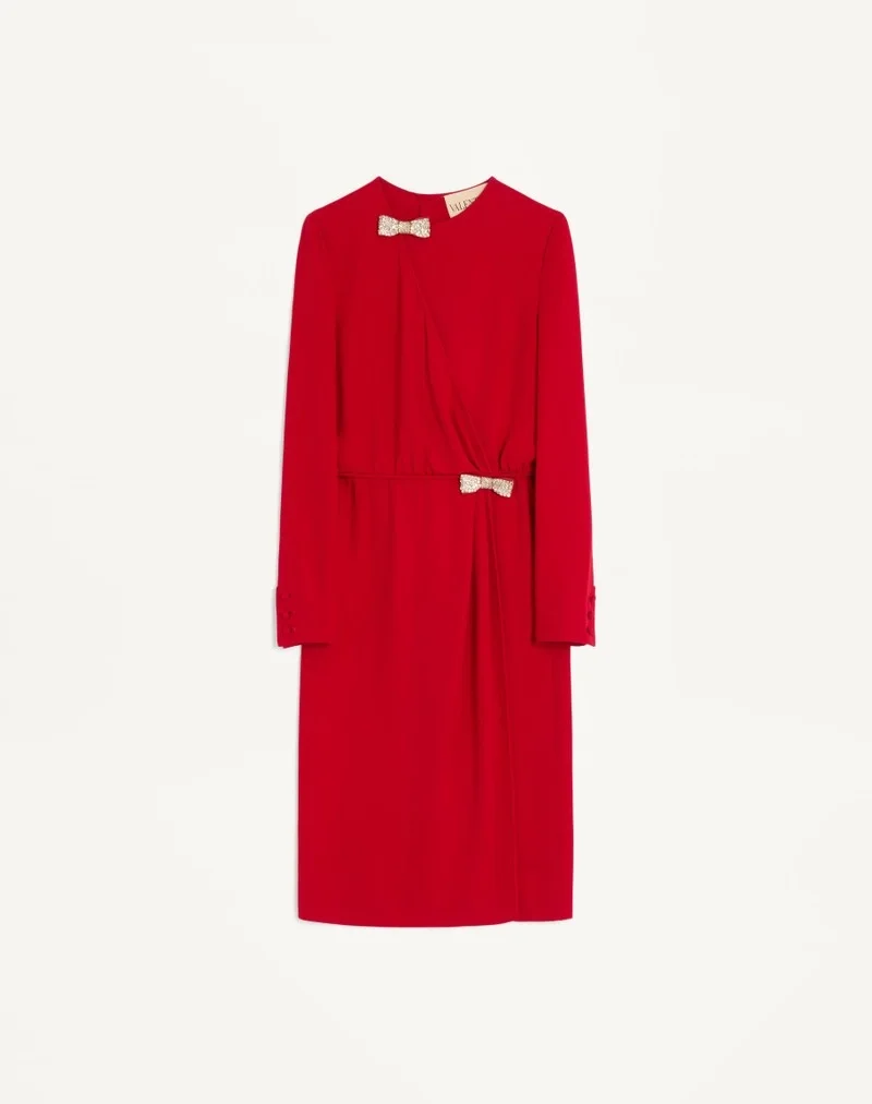Midi dress in Cady Couture with rhinestone bow embroidery