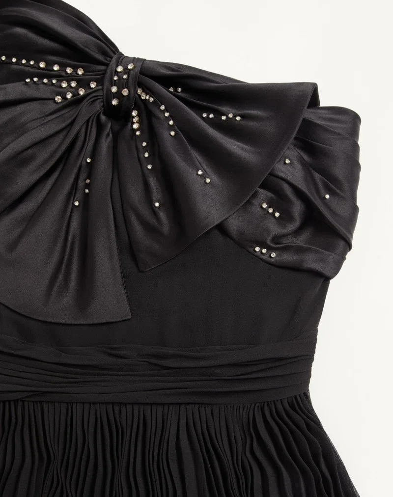 Long dress in embroidered Light Georgette with rhinestones
