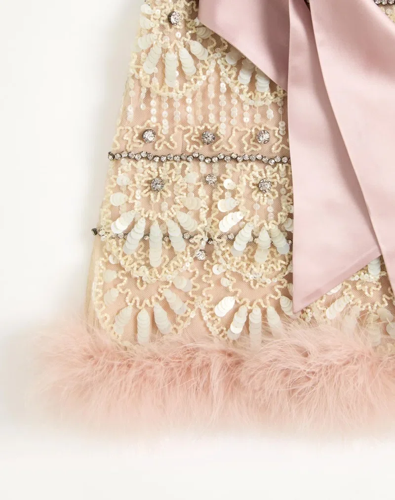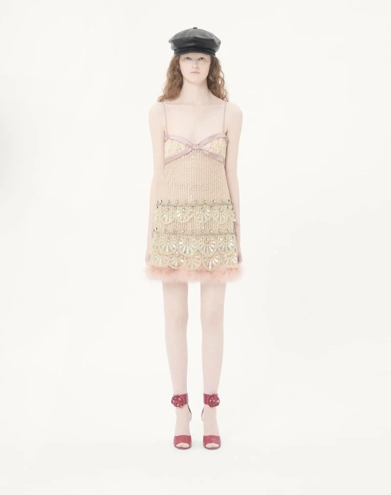 Short dress in Tulle Illusione with all-over mixed material embroidery