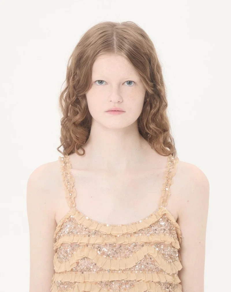 The look of the model is completed by Valentino Garavani Yolande Shoes.