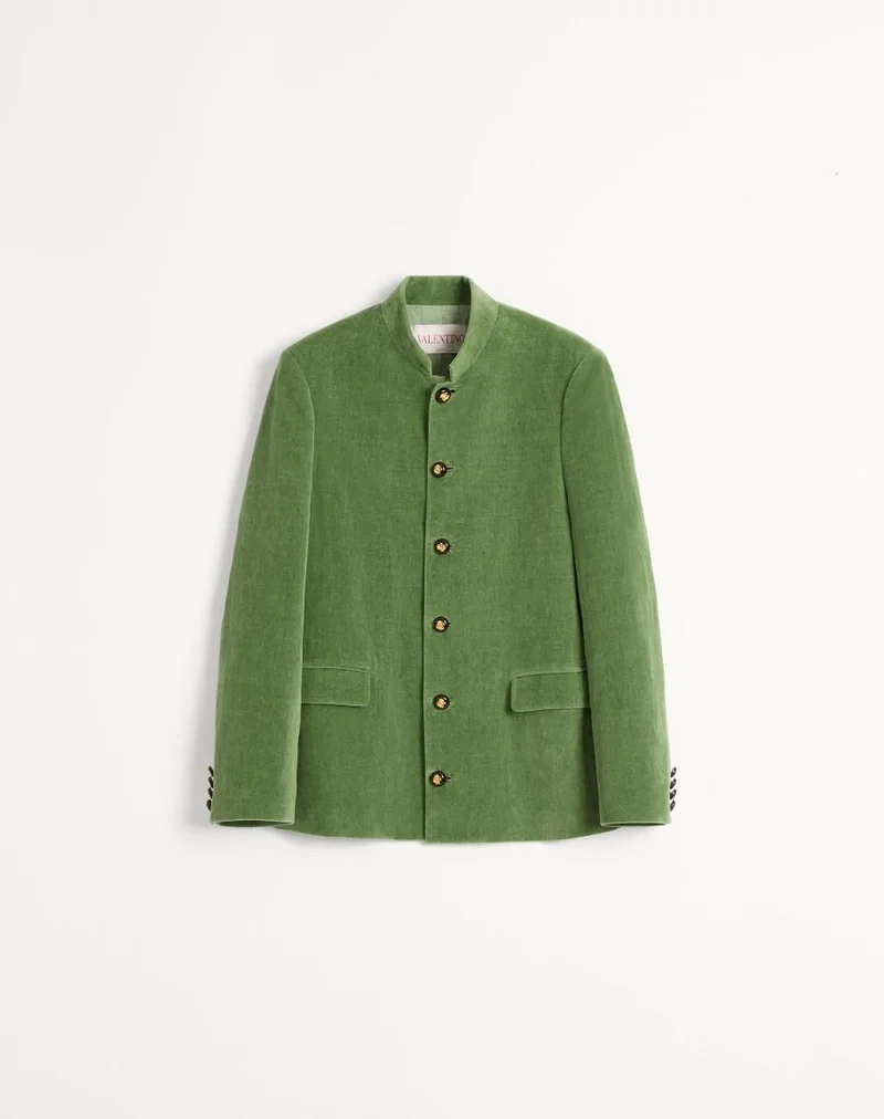 Visit the Valentino Online Boutique and discover Cotton Velvet And Washed Linen Jacket With Mandarin Collar for Man. Complimentary shipping and returns.