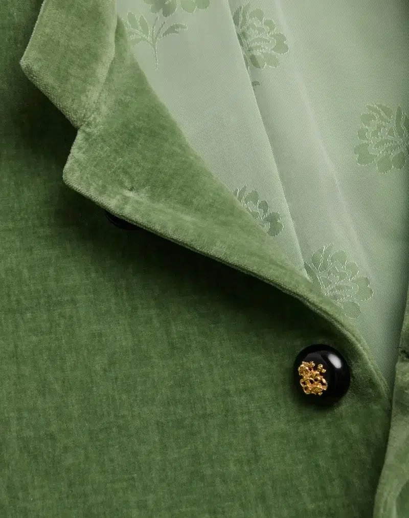 Be the first to review “Cotton Velvet And Washed Linen Jacket With Mandarin Collar”