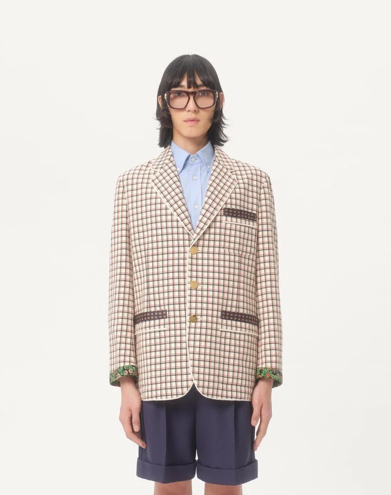 Valentino single-breasted cotton jacket with check pattern and printed edges