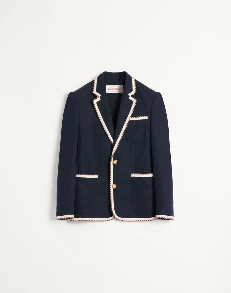 Visit the Valentino Online Boutique and discover Single-breasted Jersey Cotton Jacket With Torchon Piping for Man. Complimentary shipping and returns.