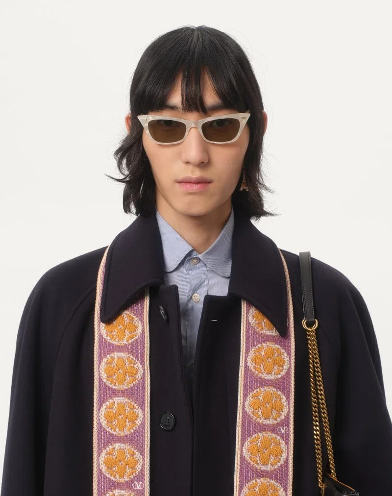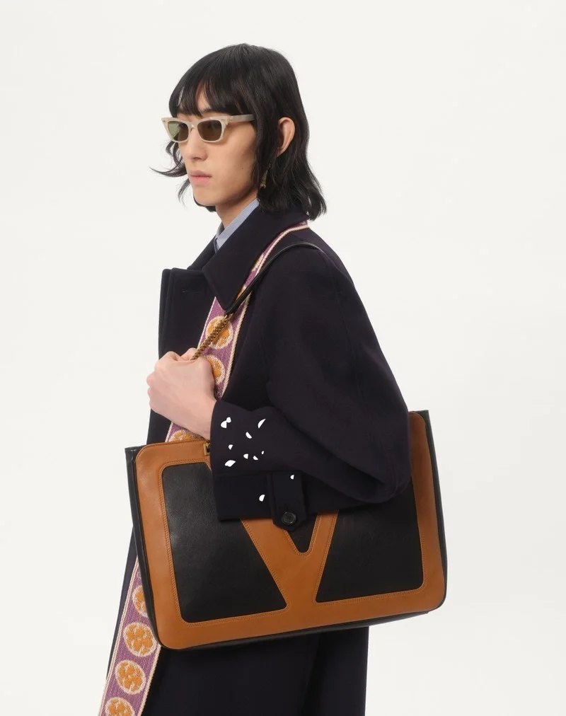 The look of the model is completed by a Valentino Garavani Viva Superstar Bag and Valentino Garavani Palm Avenue Shoes.
