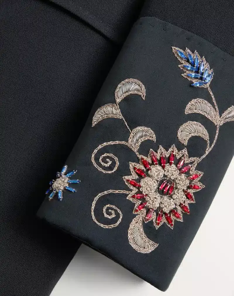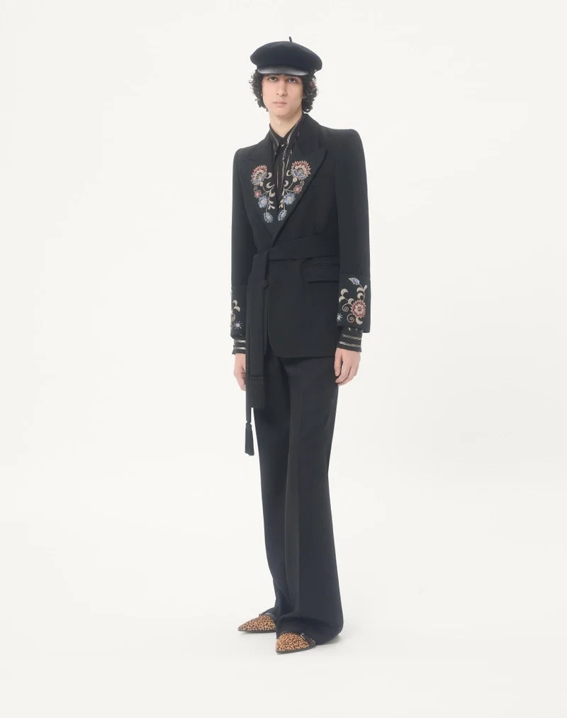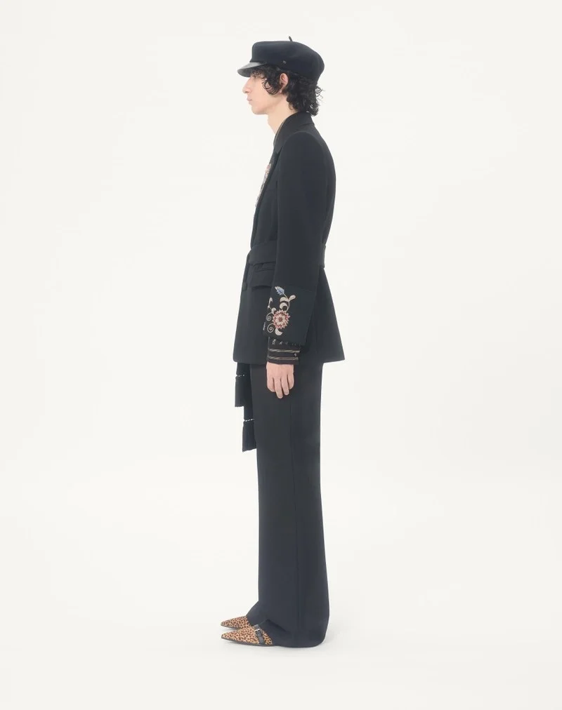 Be the first to review “Valentino Embroidered Belted Jacket in Grain De Poudre Wool”