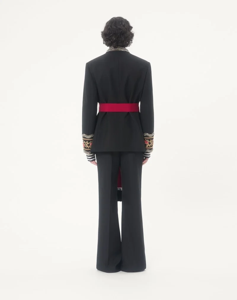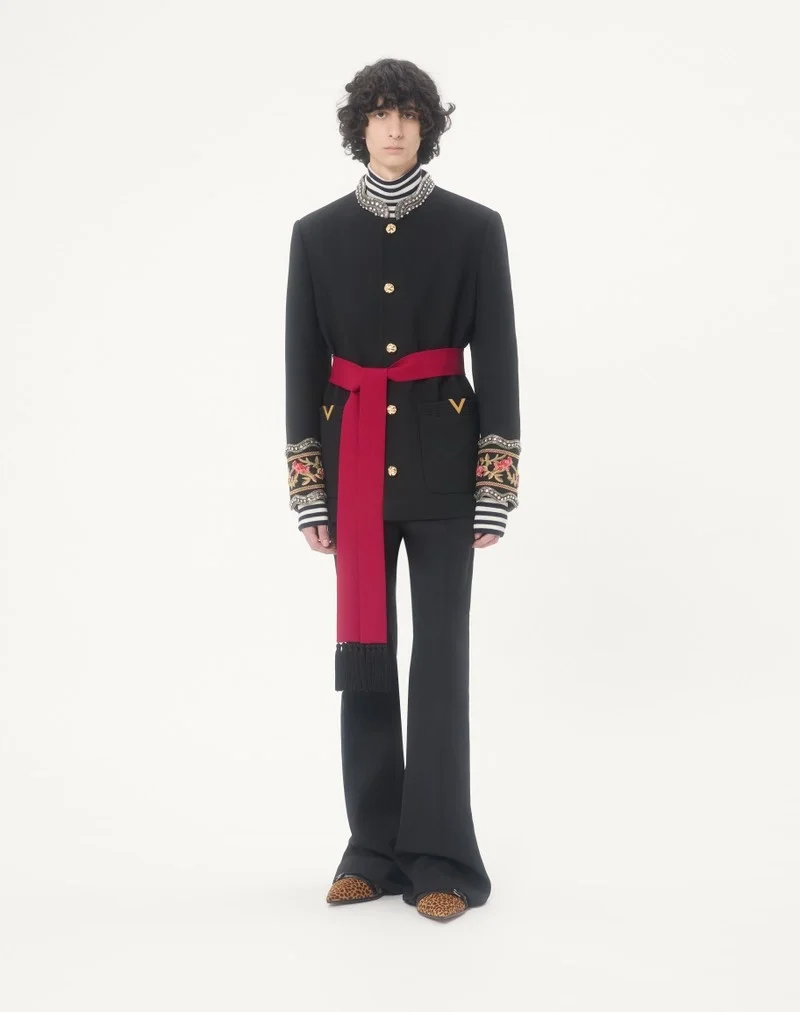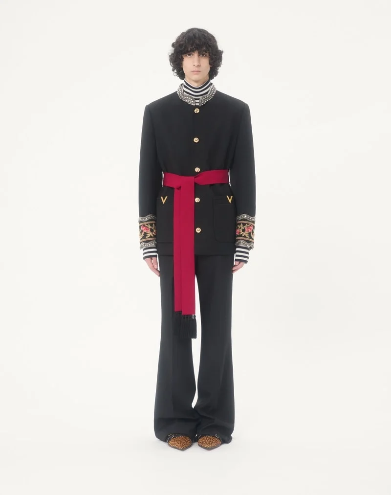 Valentino embroidered jacket with belt in wool gabardine with VGold