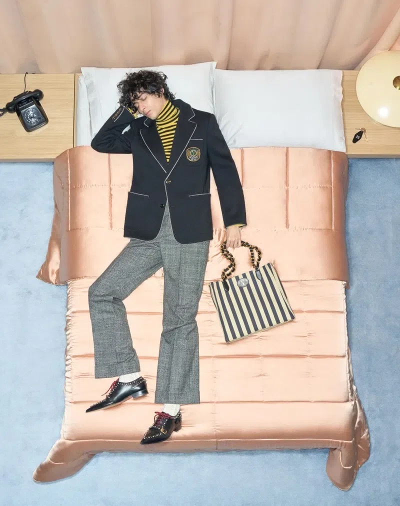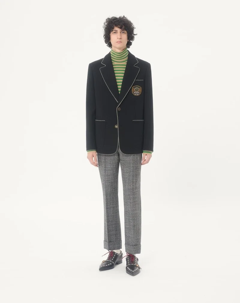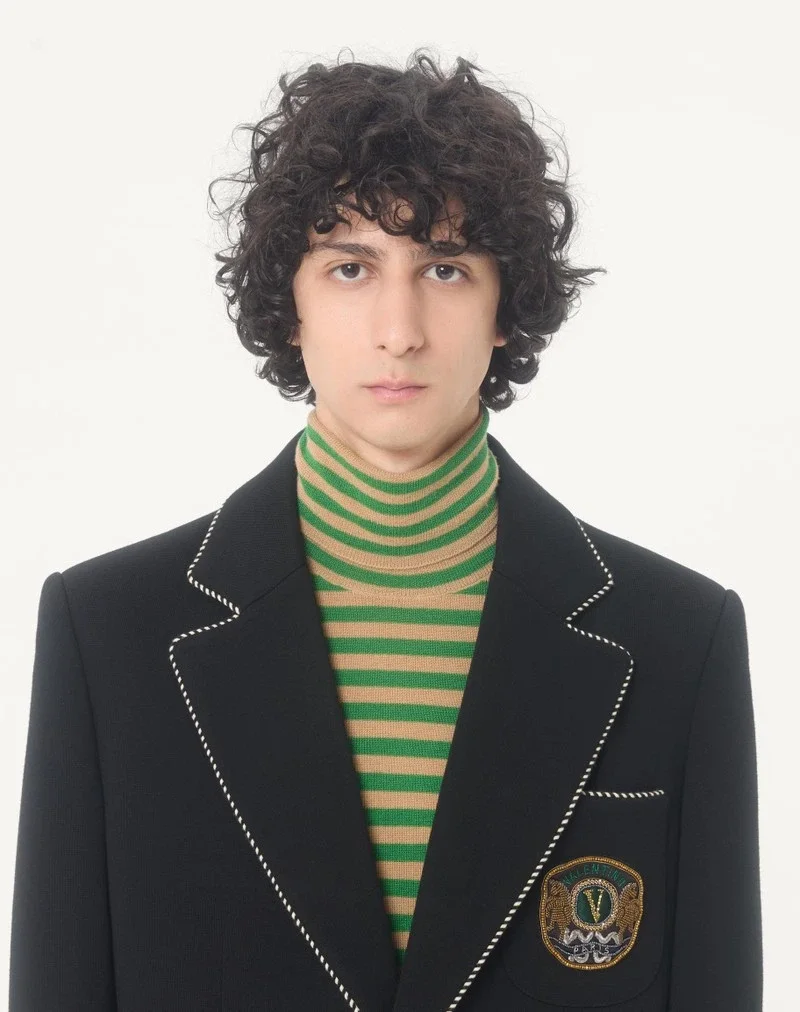 The look of the model is completed by Valentino Garavani Mockers Shoes.