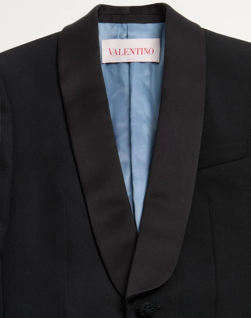 The look of the model is completed by a Valentino Garavani Bag and Valentino Garavani Bowow Shoes.