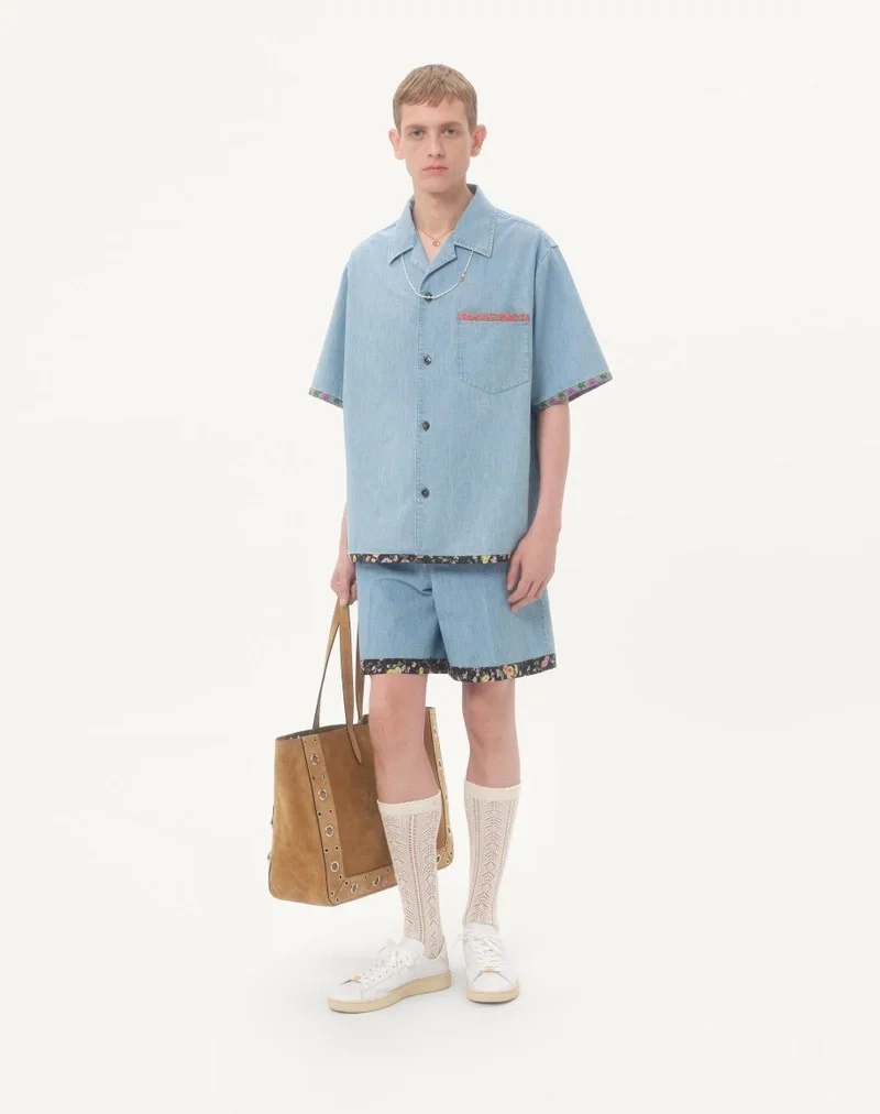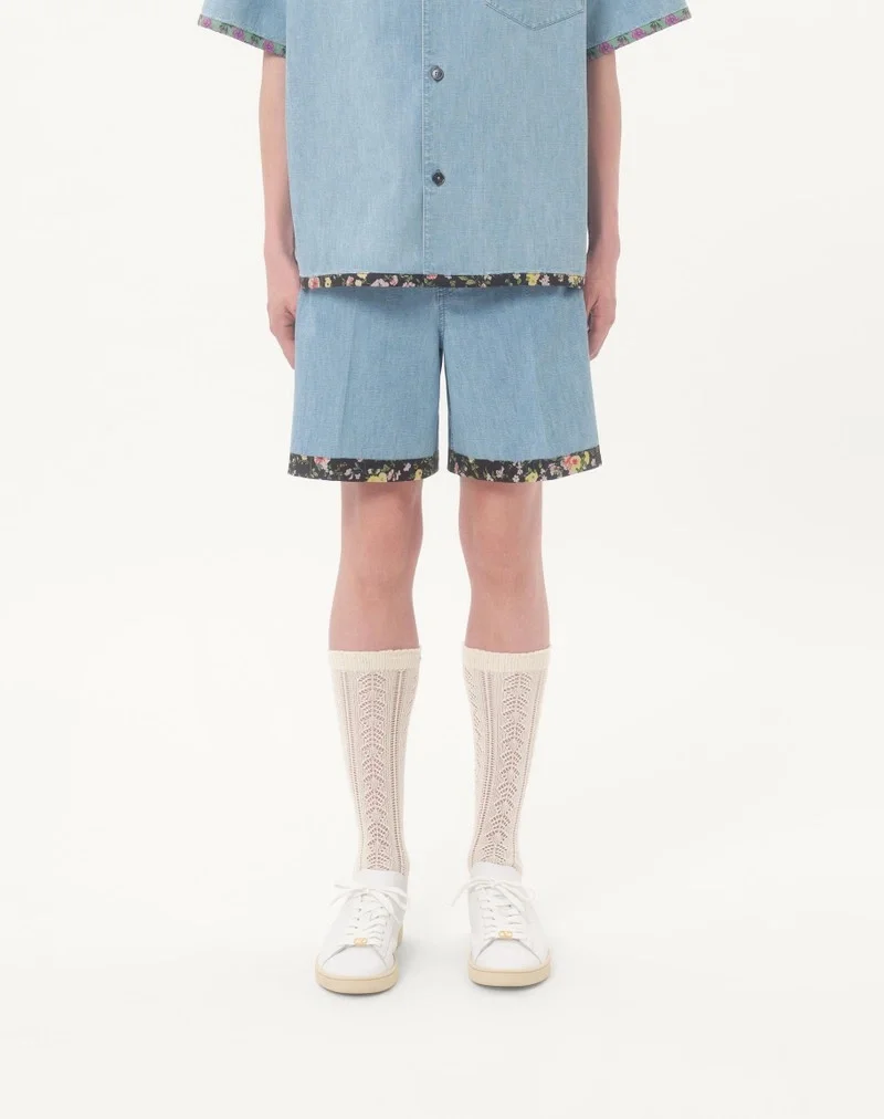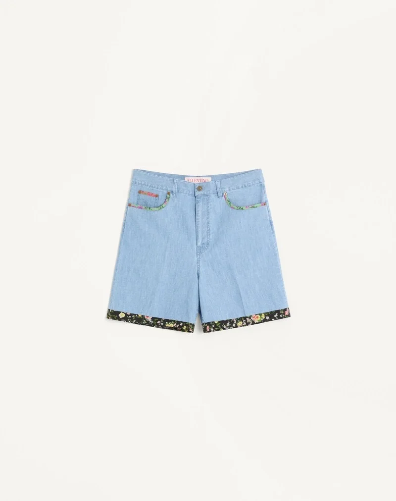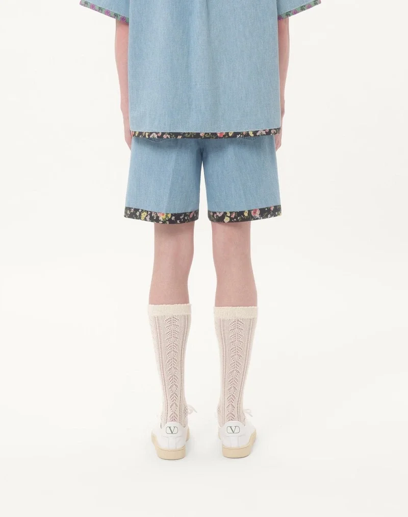 Visit the Valentino Online Boutique and discover Denim Bermuda Shorts With Floral Print Hem for Man. Complimentary shipping and returns.