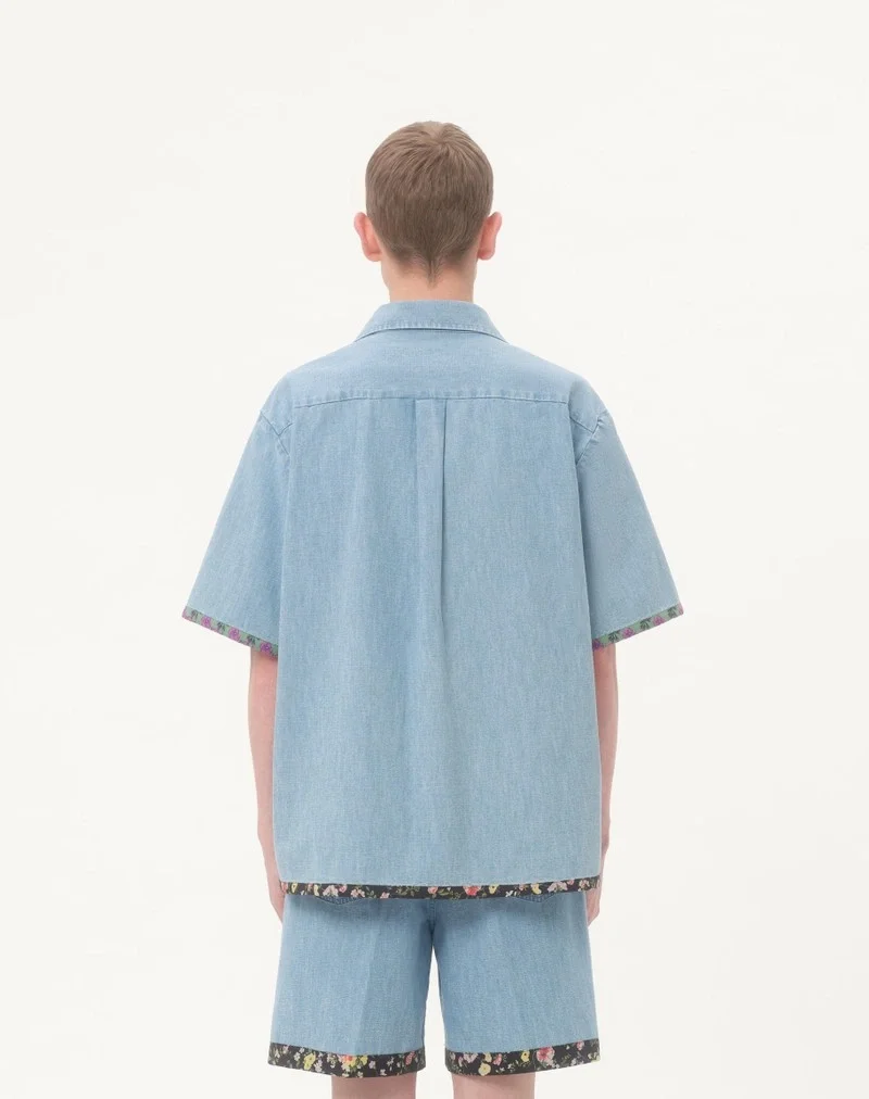 Be the first to review “Denim Bowling Shirt With Floral Print Trim”