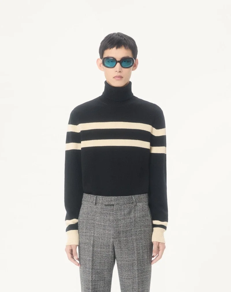 - The model is 187 cm / 6’1″ tall and wears an Italian size M