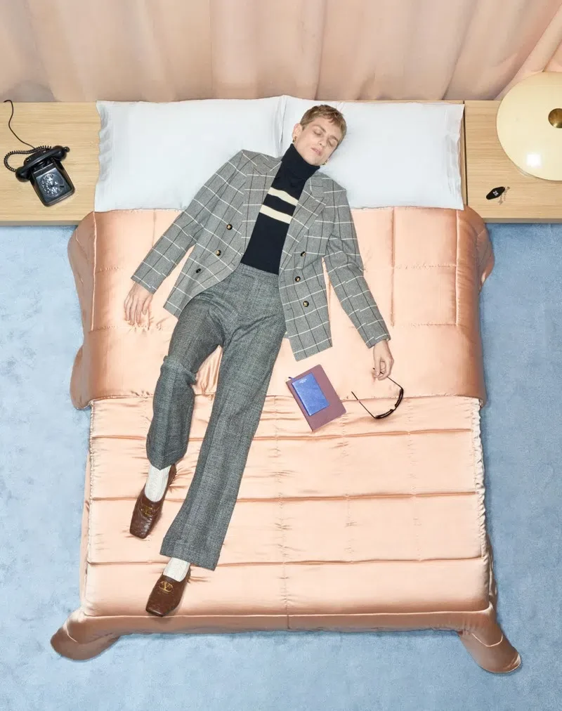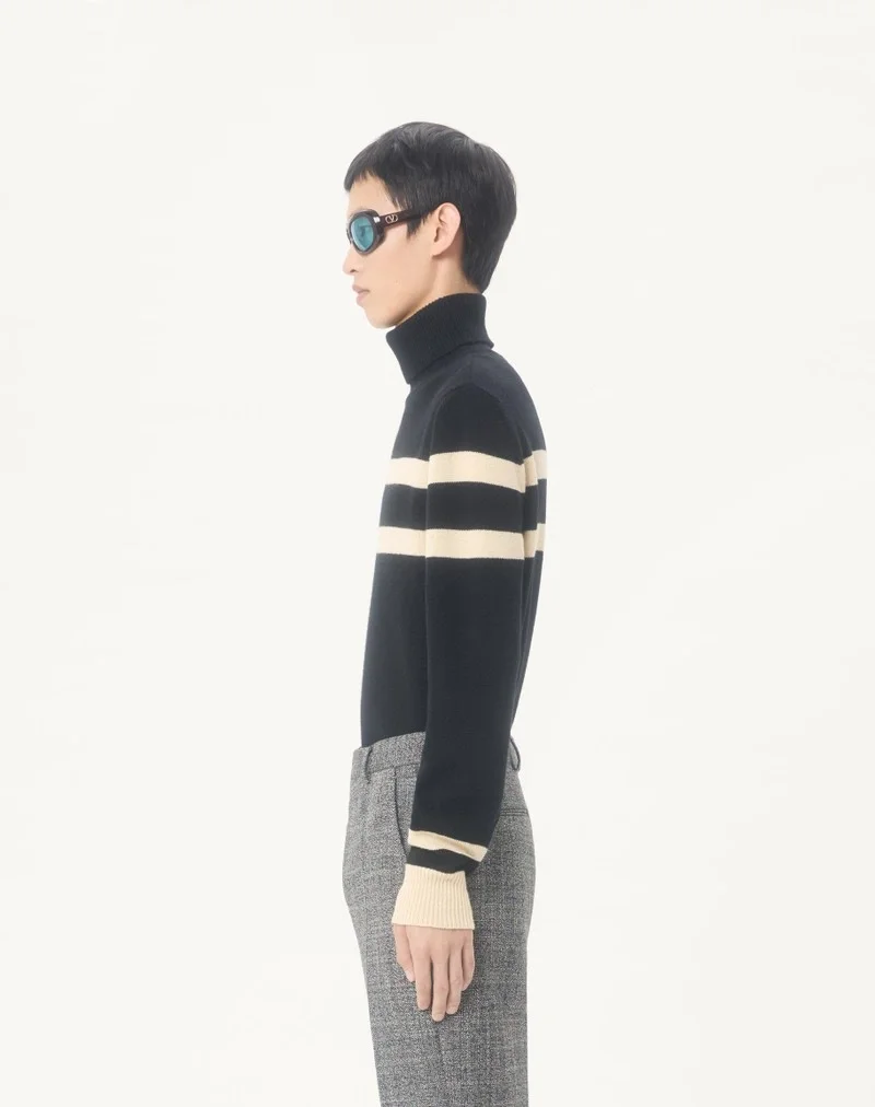 The look of the model is completed by Valentino Garavani Babouchoues Shoes.
