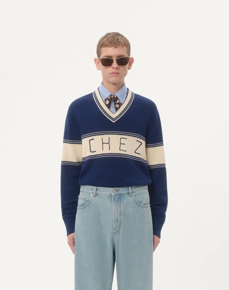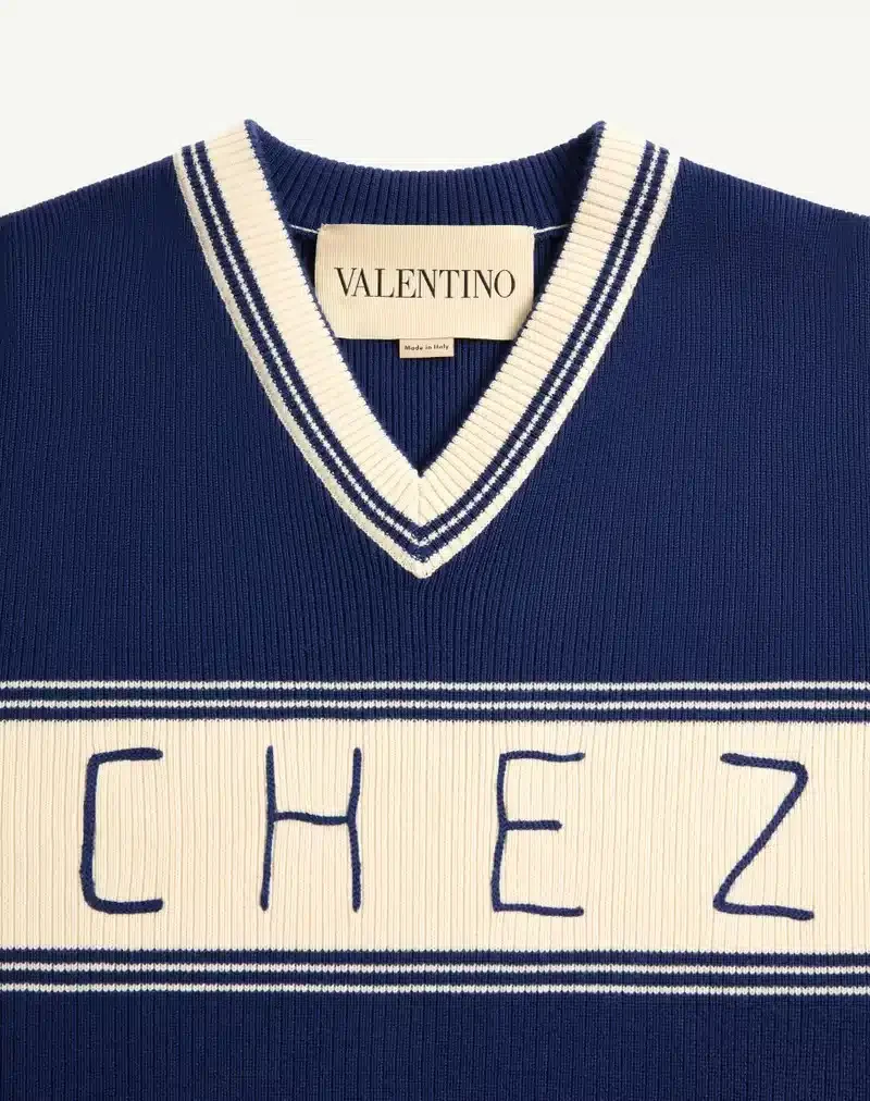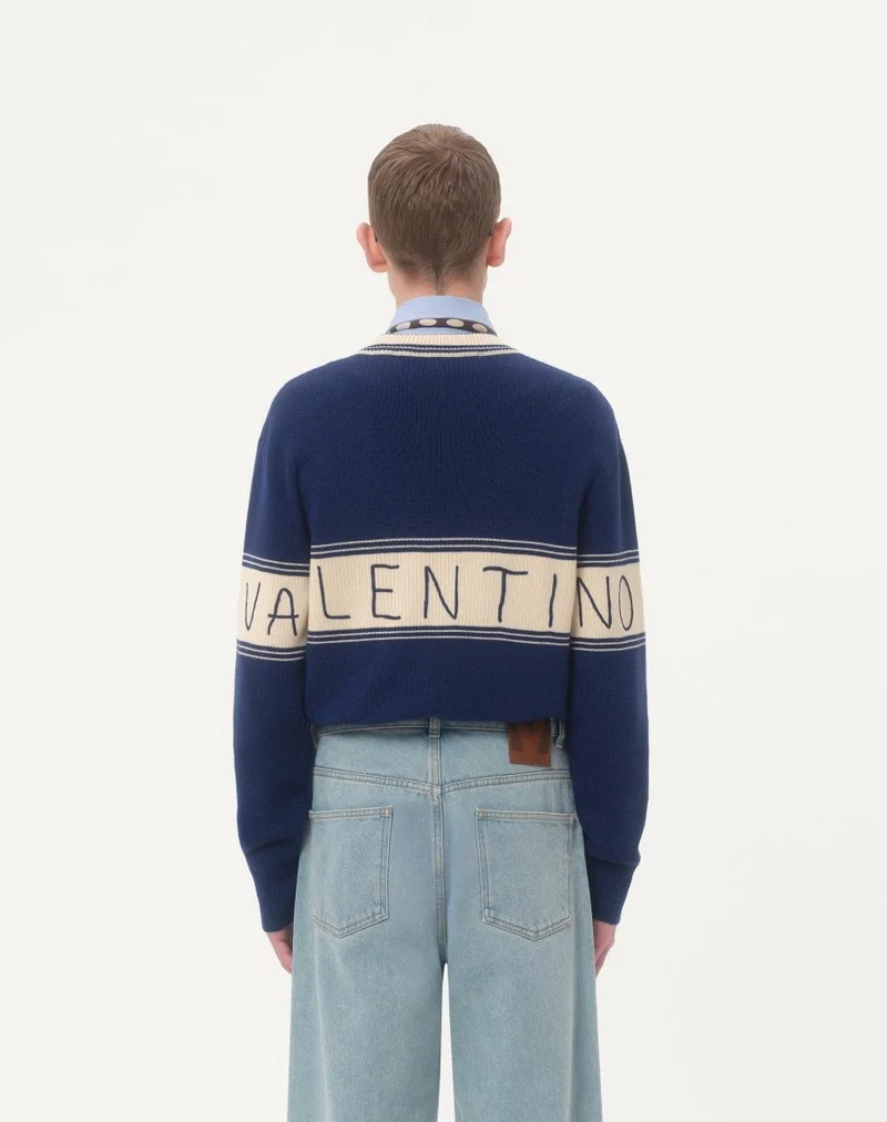 Valentino wool and cotton jumper with Chez Valentino jacquard pattern