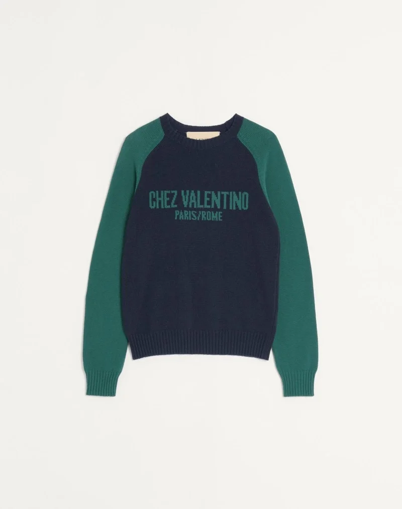 Valentino wool and cotton sweater with Chez Valentino jacquard pattern