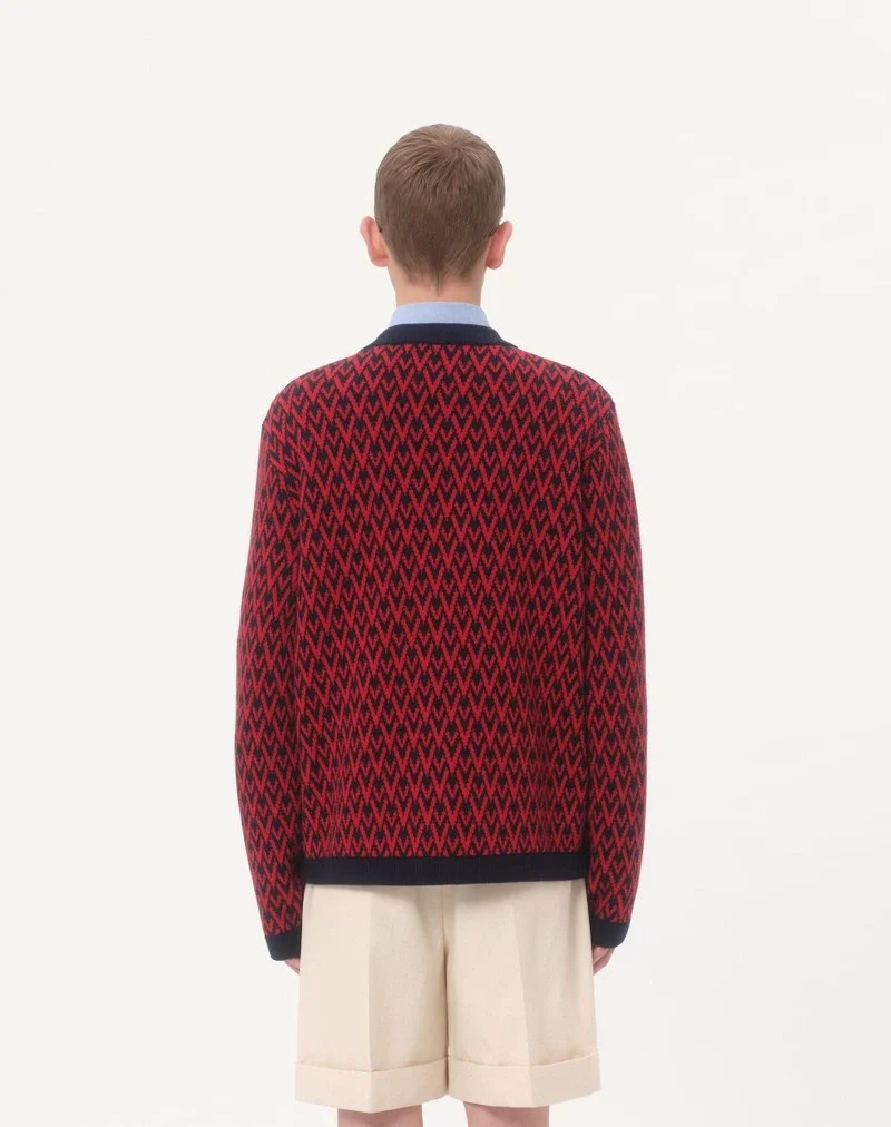 Valentino wool cardigan with all-over Toute la V jacquard pattern
