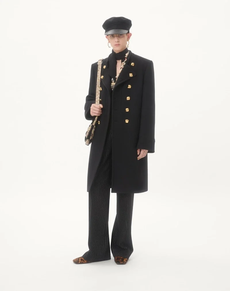 The look of the model is completed by a Valentino Garavani Bag and Valentino Garavani Babouchoues Shoes.