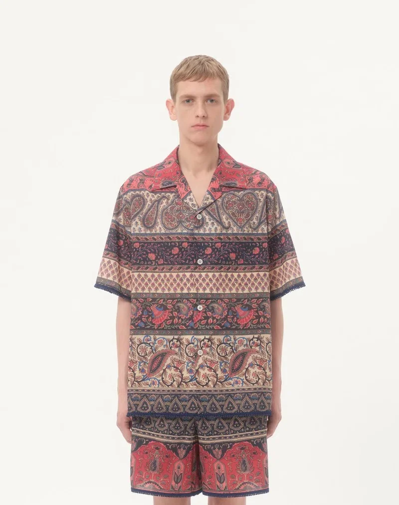 Valentino cotton muslin bowling shirt with all-over Voyage Imaginaire print and passementerie
