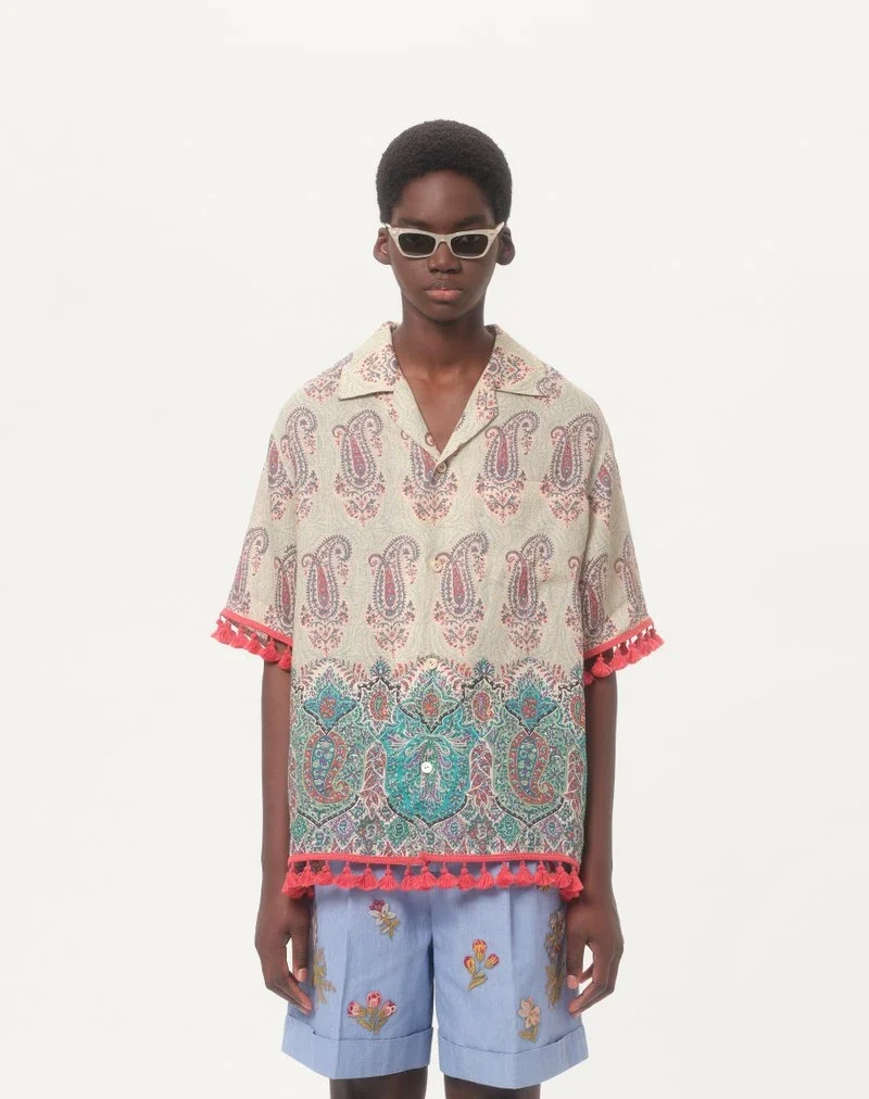 Valentino lightweight linen bowling shirt with all-over Voyage Imaginaire print