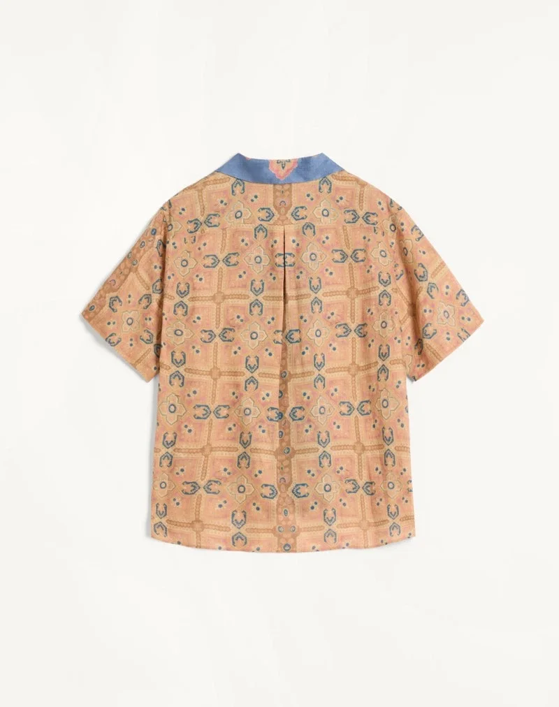 Valentino linen bowling shirt with all-over Voyage Imaginaire print