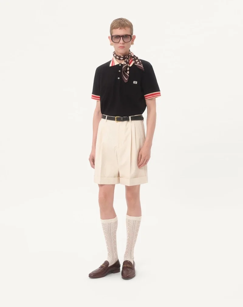 The look of the model is completed by Valentino Garavani Bowshire Shoes.
