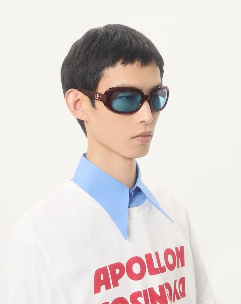 A frame that blends tradition and innovation, reinterpreting the retro-futuristic and visionary aesthetic of the 1960s. Wraparound acetate front, a technically complex structure that creates a fluid, avant-garde effect. VLogo mechanically screwed onto the temple for instant recognition.