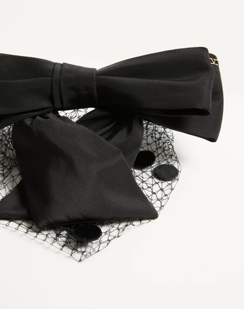 Visit the Valentino Online Boutique and discover Vlogo Signature Headband With Bow And Veil In Silk And Velvet for Woman. Complimentary shipping and returns.