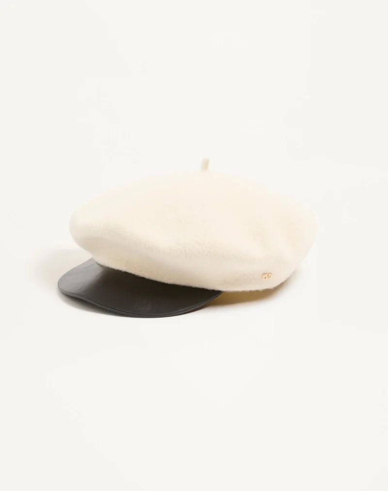 Valentino Garavani Vlogo Signature wool cap with leather visor