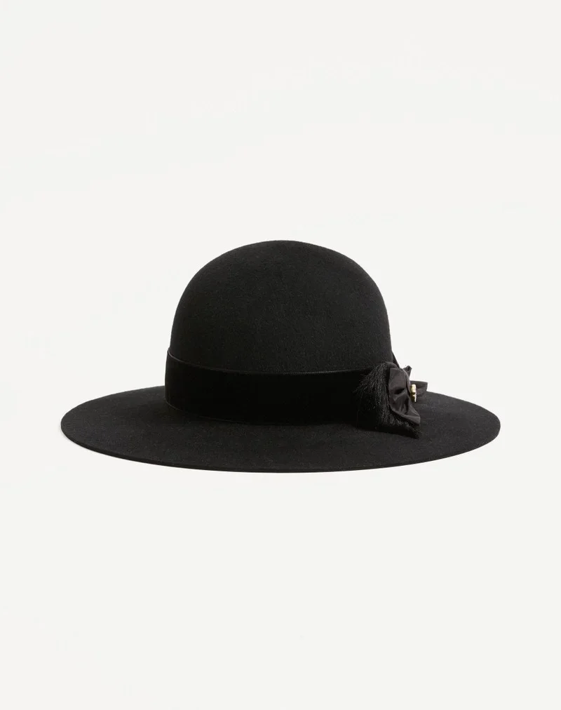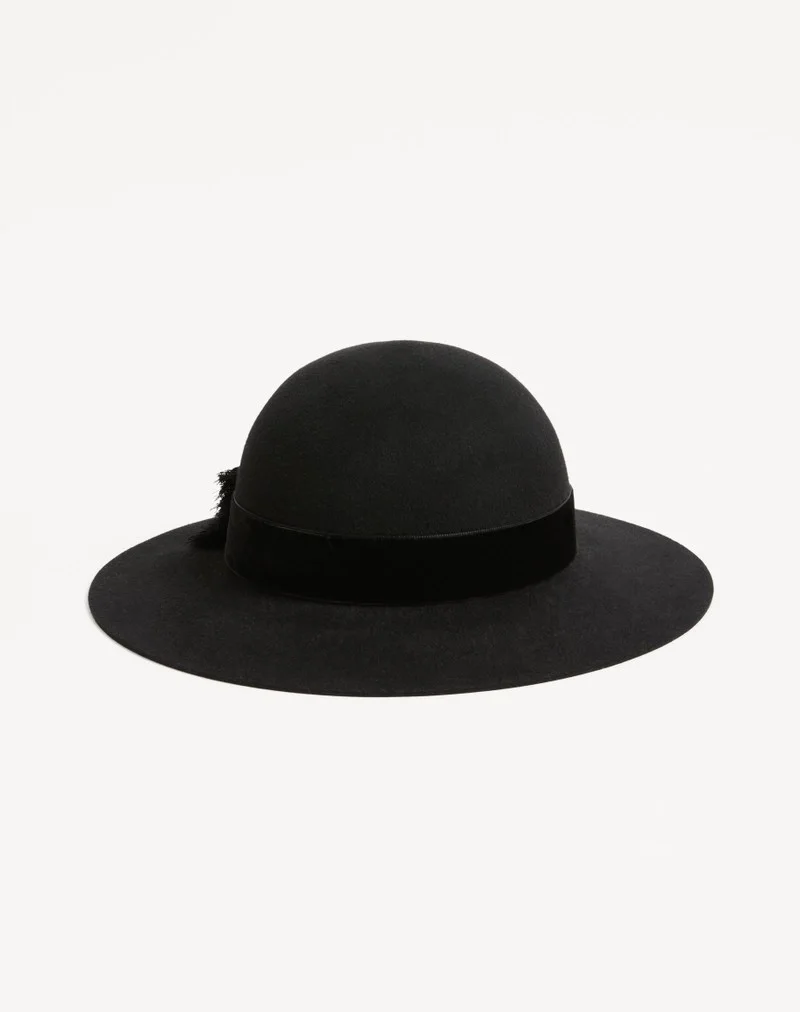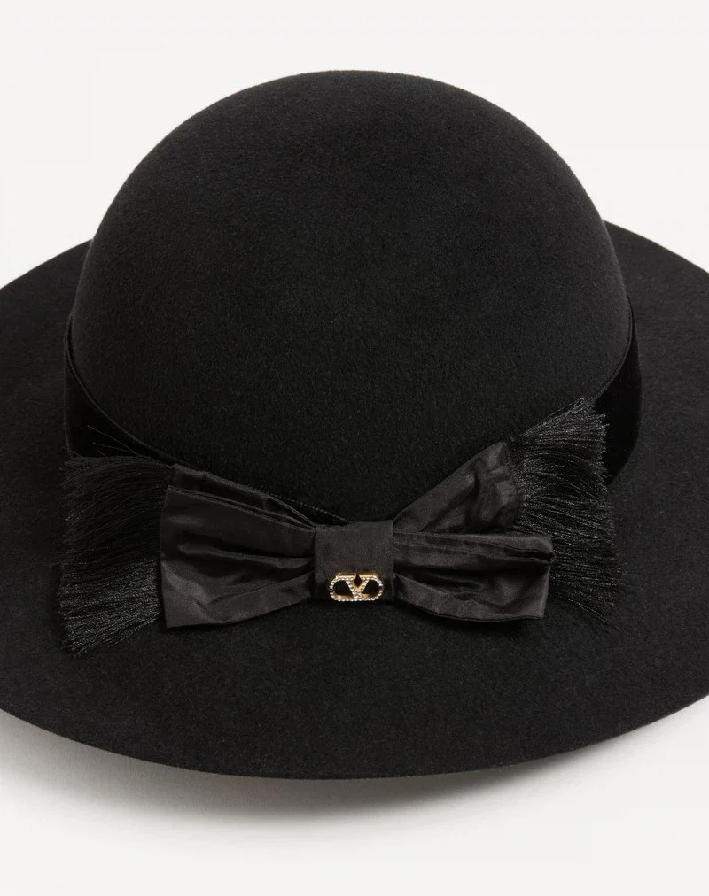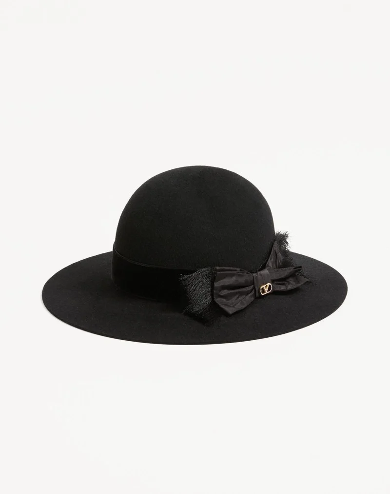 Visit the Valentino Online Boutique and discover Vlogo Signature Hat In Lapin Fabric And Velvet With Taffetas Bow for Woman. Complimentary shipping and returns.