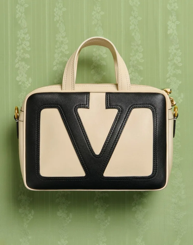 Valentino Garavani Viva Superstar nappa leather handbag. The bag features a contrasting maxi leather VLogo Signature detail and can be worn cross-body or hand-held thanks to the handles and two shoulder straps.