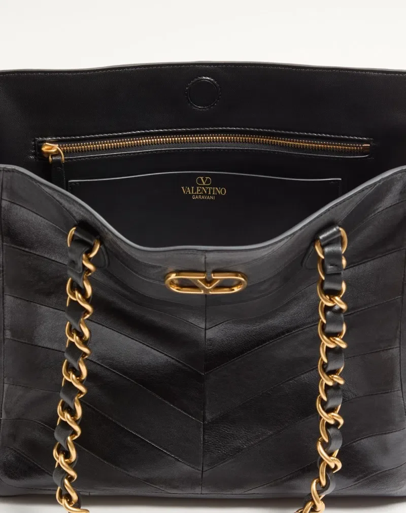 Valentino Garavani Laseine Shopping Bag In Nappa Leather With A Chevron Pattern