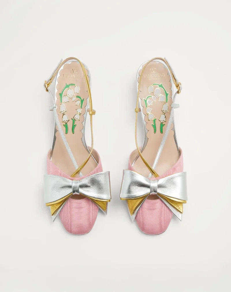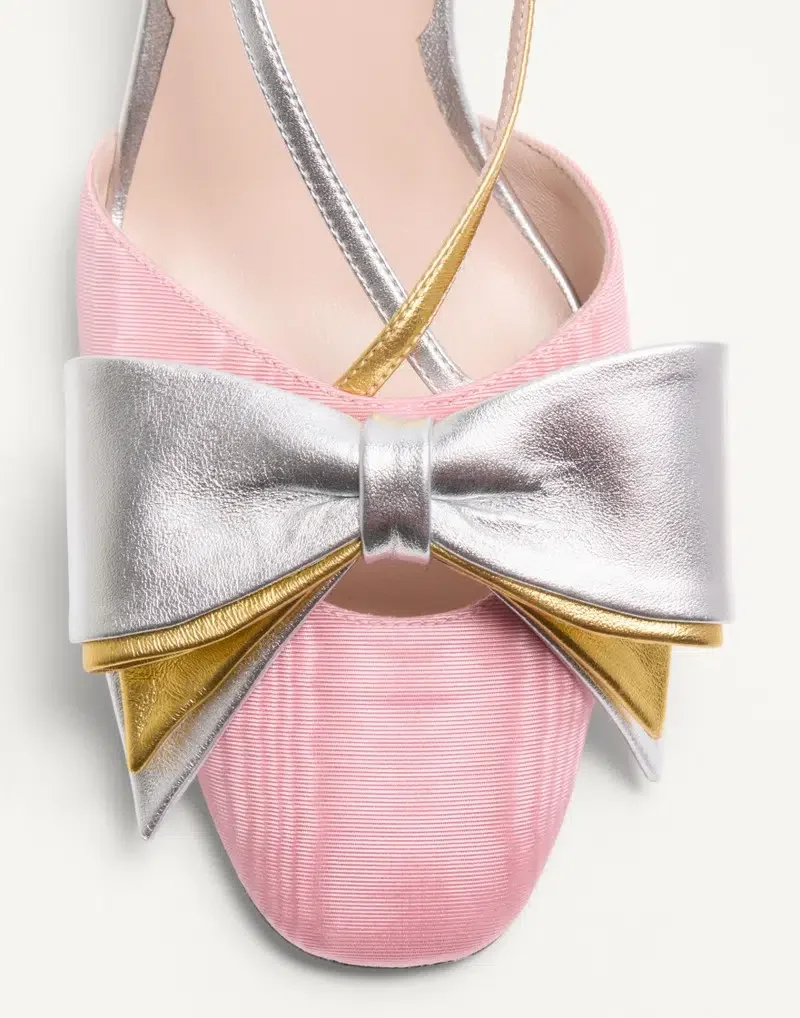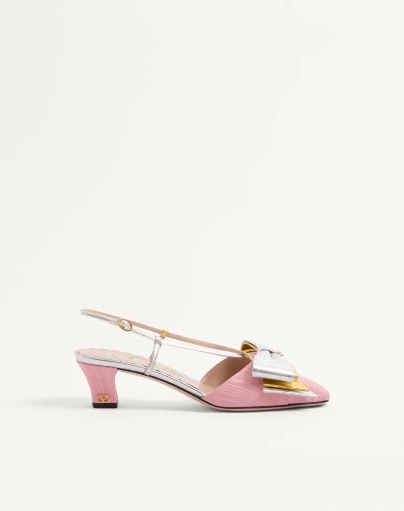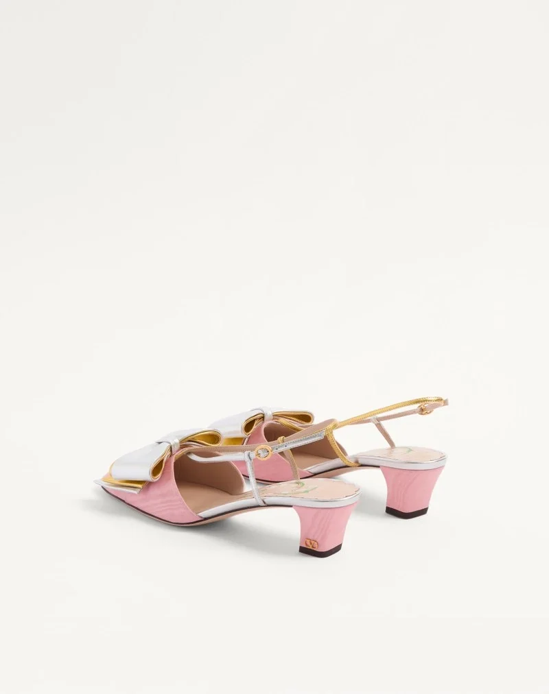 Valentino Garavani Bowow slingback pump in moiré fabric with bow detail in laminated nappa