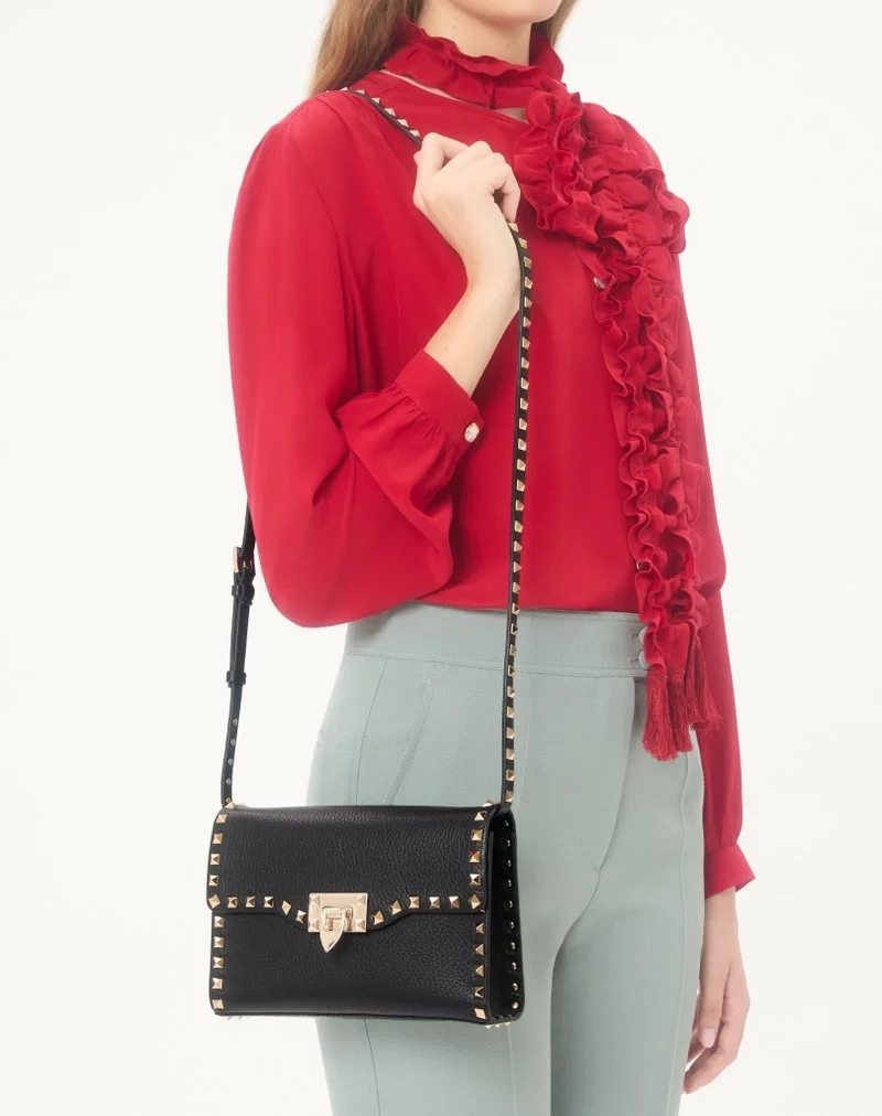 Visit the Valentino Online Boutique and discover Small Rockstud Grainy Calfskin Crossbody Bag for Woman. Complimentary shipping and returns.