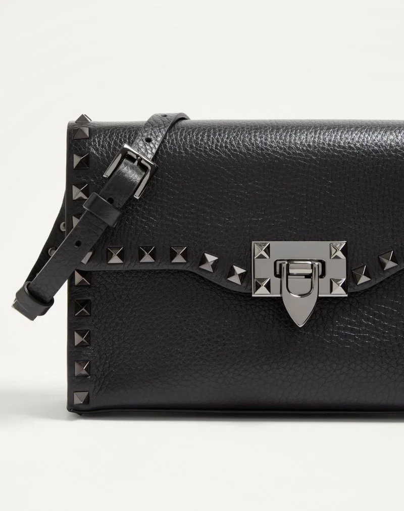 Visit the Valentino Online Boutique and discover Small Rockstud Grainy Calfskin Crossbody Bag for Woman. Complimentary shipping and returns.