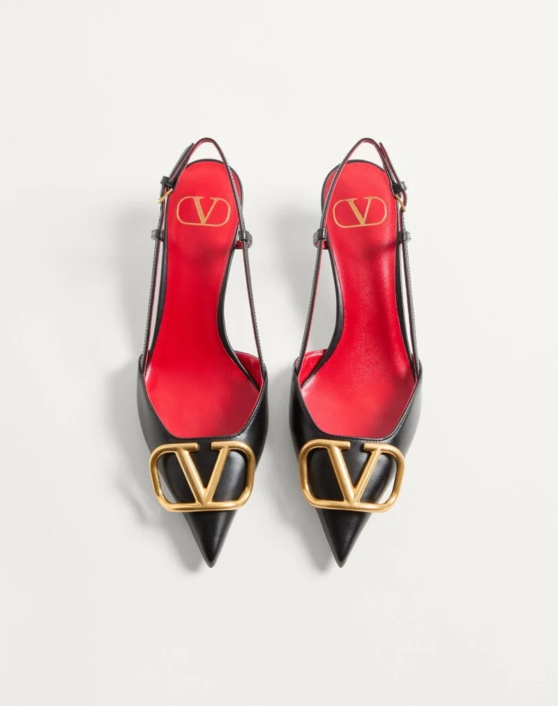 Valentino Garavani calfskin slingback pump with VLogo Signature embellishment.