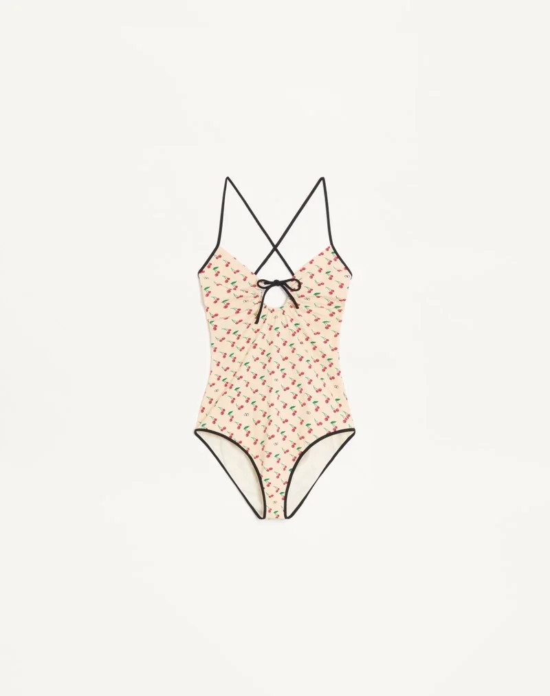 Cherryfic cherry pattern lycra one-piece swimsuit
